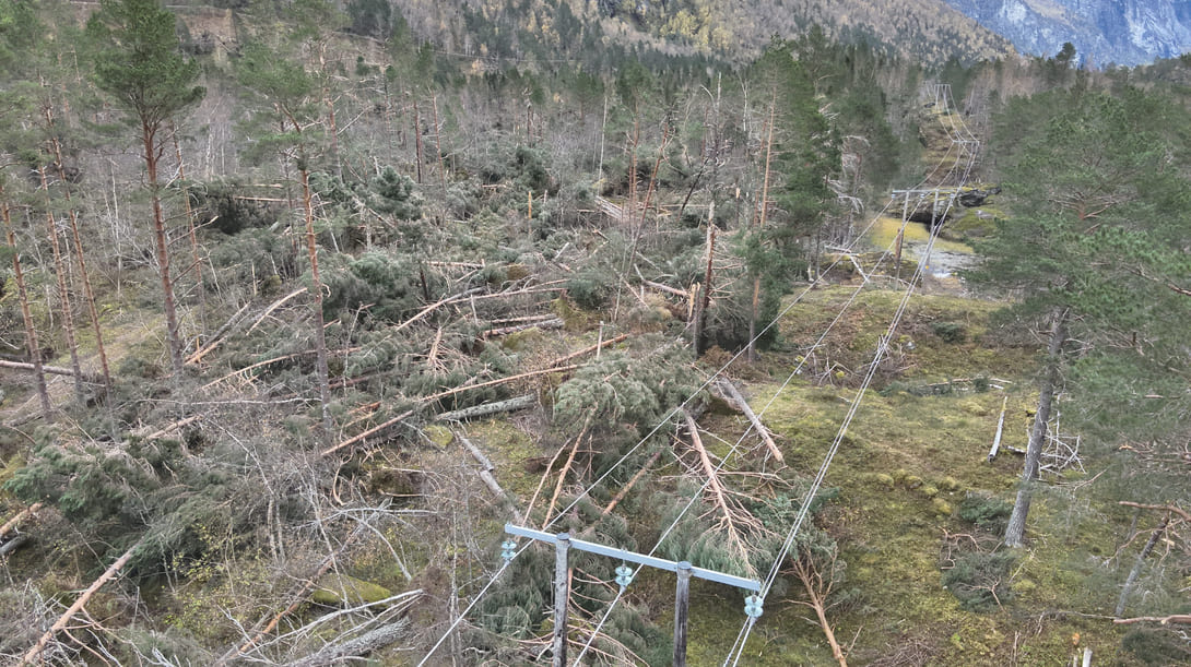 Det samme poenget trekkes frem av Tony Dragset, nettsjef i Romsdalsnett. Selv om uværet har brukket ned trær som om det var tannpirkere, som kan sees av bildet over, klarte mannskapet hans å få nærmest alle kunder tilbake på nett innen søndag kveld. Han sier at han er stolte av den innsatsen medarbeiderne har gjort i løpet av helgen, og påpeker at Romsdalsnett har hatt 20 ganger så mange montører ute i felten for feilrettinger, sammenlignet med større selskaper, når en ser til antall abonnenter.