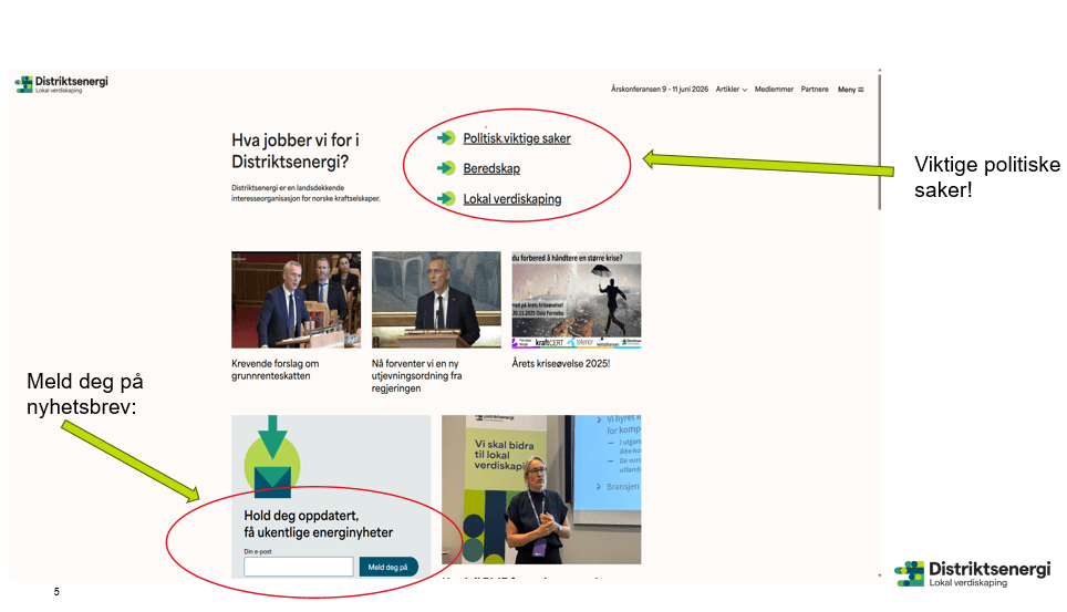 På den tidligere nettsiden ble det litt vanskelig å finne ut hva vi faktisk mente om aktuelle saker. Derfor har vi tatt noen små grep. Det første du ser på siden vår er hva Distriktsenergi mener. Tidligere reflekterte tidligere ikke disse punktene helt hva vi faktisk jobbet med, og de var ikke dynamiske.
